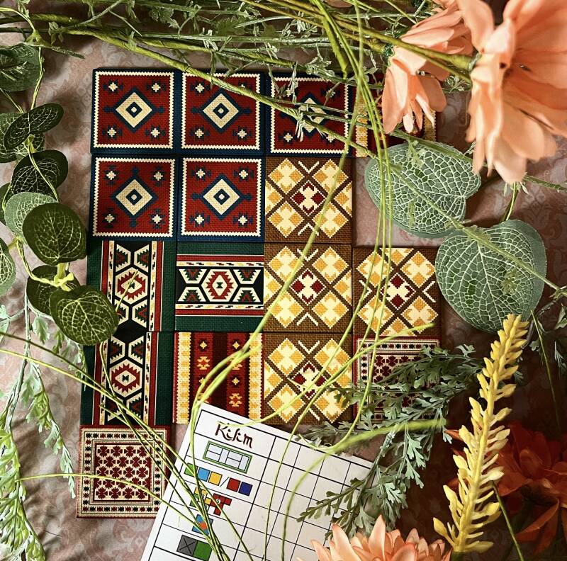 I'm not always a fan of tile-laying games, but Kilim does change that. I think that is mainly due to the short game time, which is 30 minutes. It's just a fun, easy game for in between. Perhaps a bit simple for the experienced players, although you sometimes have to play well to get the carpet tiles you want. Making the Kilim is of course also a kind of small puzzle.