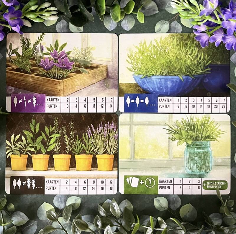 I'm a huge fan of Herbaceous, the game has a nice ambiance and has artwork that makes me happy! I was allowed to play this game for the first time at a game fair in the Netherlands. It's a nice quick and simple game that I like to play in between. There is also a bit of luck involved in choosing the right cards and the choice of the other players. Do they put cards in the community garden that will help you? You should also keep a close eye on when you are going to pot herbs before your opponent beats you to it. I've had that a few times. In addition, you can also play Herbaceous solo, which in my opinion is a real plus in games.