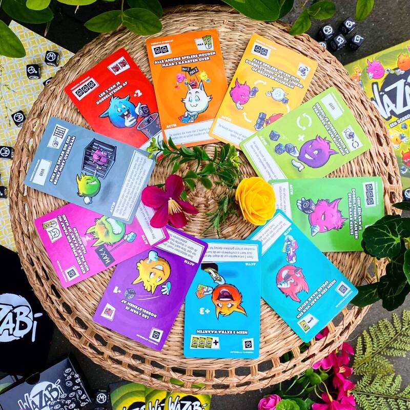 Wazabi is a smooth and easy game. The rules are very simple so you can start playing quickly. The actions of the cards are also still on the cards so that you can fall back on them during the game. I've become quite a fan these days of fast dice games that you can do in between heavier games. Wazabi is a game for you if you like dice games, like to annoy your opponents and can also handle being annoyed yourself!